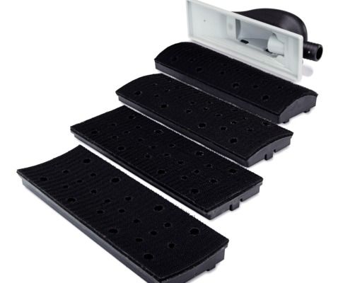 Manuálny blok na ručnú prácu s hoblíkmi v 70 x 198 mm. Sada 4 rôzne tvarovaných montážnych dosiek pre vypuklé, konkávne a rovné povrchy. S nasávacím pripojením (Ø 29 mm).70x198mm - 22dier